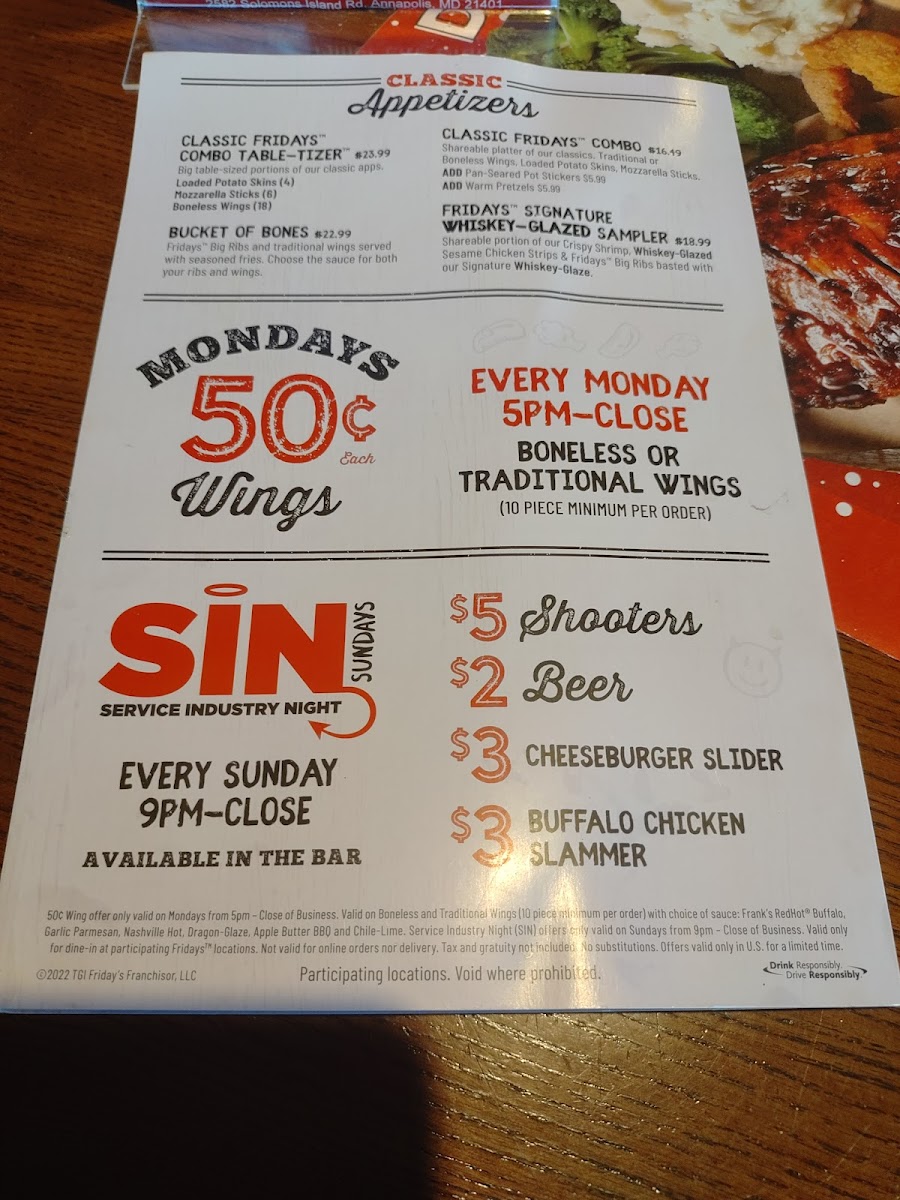 In summary, TGI Fridays Annapolis stands out not just for its extensive menu but also for its commitment to customer satisfaction, highlighted by its attentive staff and inviting atmosphere. Next time you're in the area, make sure to stop by and discover your new favorite dining spot.