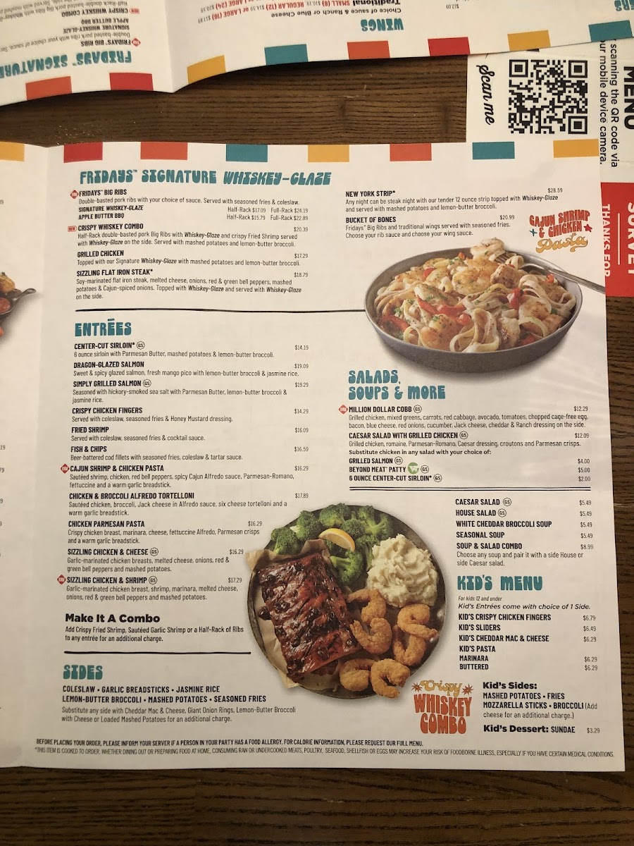 “ We arrived a few minutes prior to 11am, and the restaurant was opened promptly at 11am. As the first group, we were greeted and seated right away. The Chips and Salsa were complimentary to Fridays Rewards customers. The Cajun Shrimp and Chicken Pasta had a good amount of ingredients. The Sizzling Chicken and Shrimp was served on a hot metal plate. The Kid’s Sliders included two small burgers and many fries. The Oreo Madness came in as two cookies ice cream with sprinkles with strawberries on the side. ”